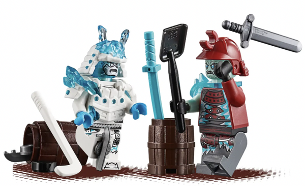 - Wapens: de zilverkleurige katana en de goudkleurige hamer van Lloyd, de dolk van Akita, de Rol van Verboden Spinjitzu van de Keizer van het IJs, de ijsspeer van Generaal Vex, de 2 ijskatana's van Sneeuwstorm Zwaardmeester en de kruisboog van Sneeuwstorm Schutter.