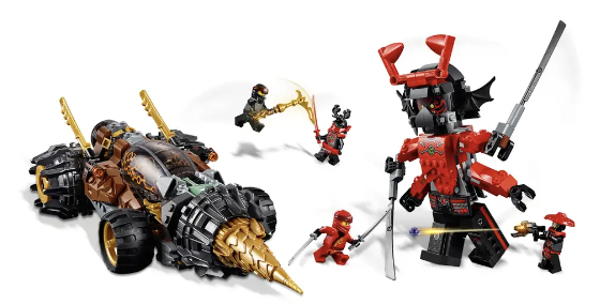 Ga de strijd tegen het Stenen Leger aan met LEGO® NINJAGO® Cole's Grondboor! Breng dit geweldige voertuig in beweging om de enorme boor te laten draaien. Kijk uit voor de reusachtige zwaarden van de gigantische Stenen Strijder en val hem aan met de noppenschieters.