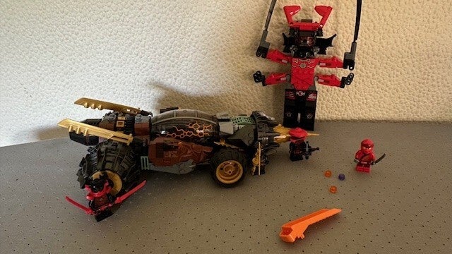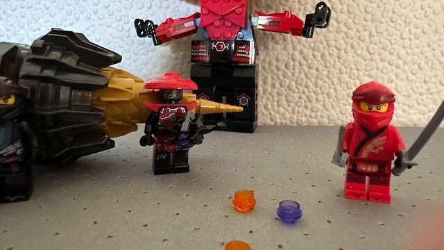 - Wapens: de 2 katana's van LEGO® NINJAGO® ninja Kai, de kruisboog met noppenschieter van de scout van het Stenen Leger en de 2 katana's van de strijder van het Stenen Leger.