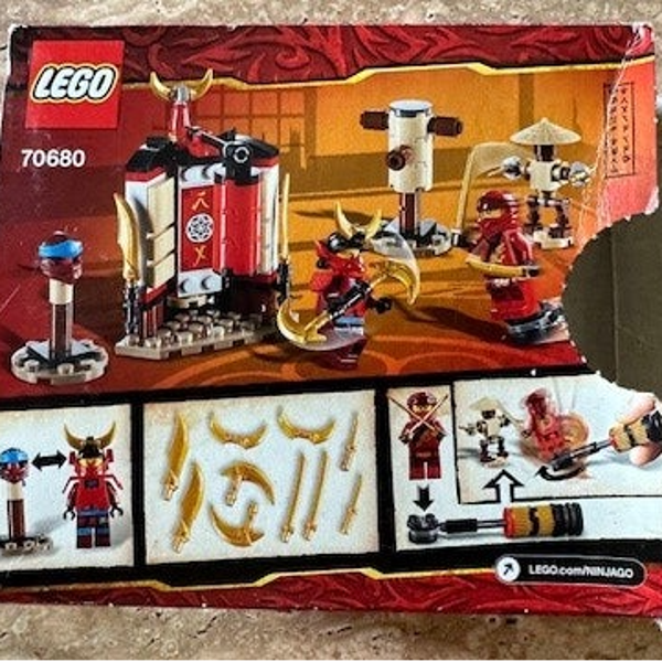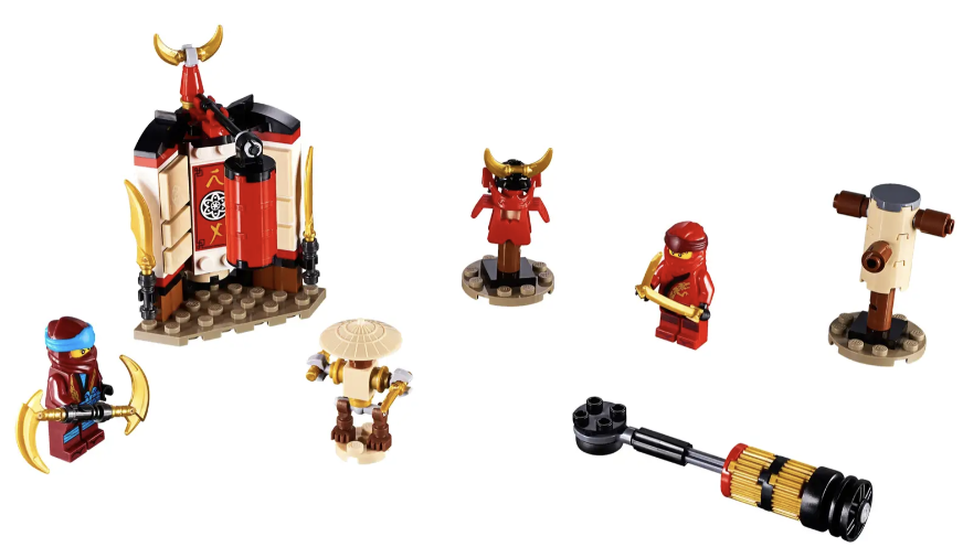 - Deze LEGO® NINJAGO® set bevat een bouwbaar oefenstation voor ninja's met een draaiende bokszak, 2 decoratieve goudkleurige kuan tao-zwaarden en een decoratief maanzwaard, een trainingspop met 2 afneembare dolken, een trainingspop in houtstijl en een handplatform voor ninjaduels waar minifiguren op kunnen staan.