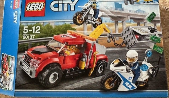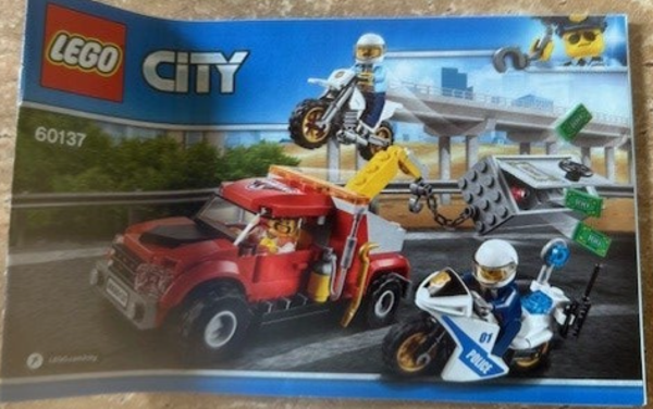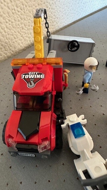 - De set omvat een sleeptruck, brandkast, offroad-politiemotor en politie-racemotor.