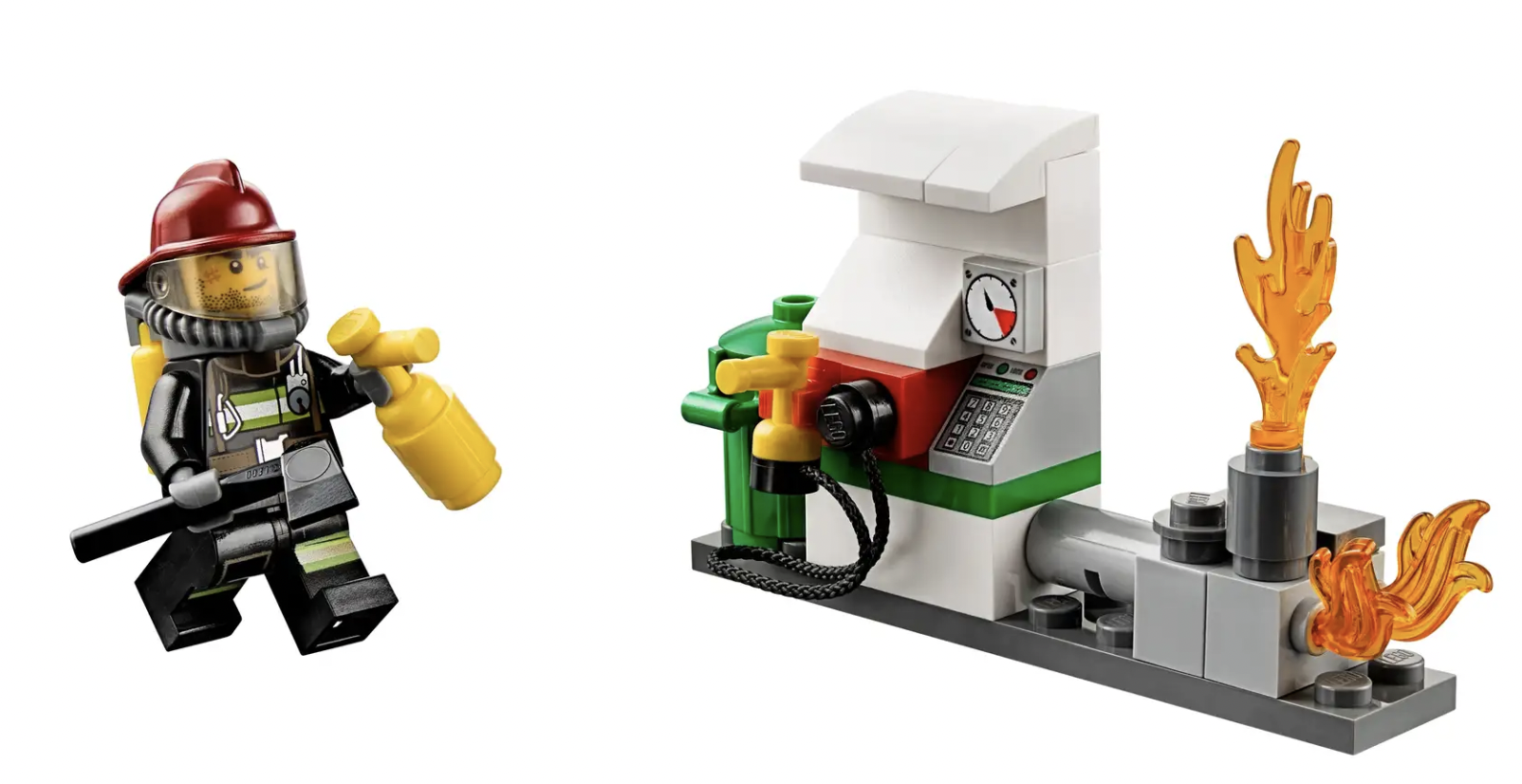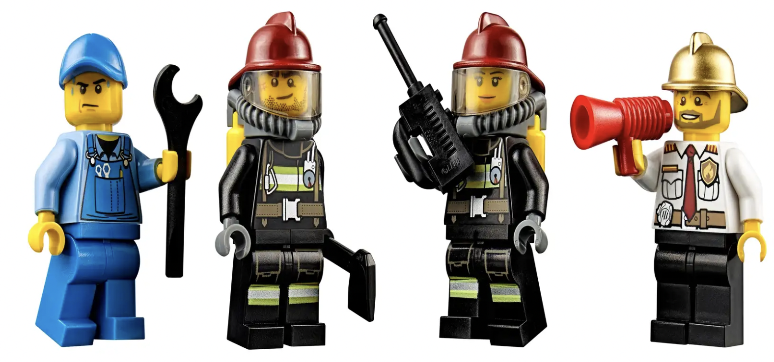 - Inclusief 4 minifiguren met diverse accessoires: een pompbediende, 2 brandweermannen en een brandweercommandant