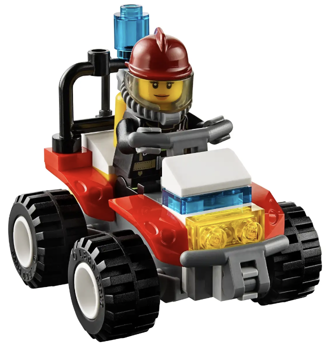 - De brandweer-quad is 4 cm hoog, 7 cm lang en 4 cm breed