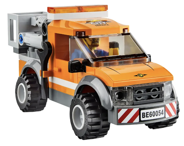 De verkeerslichten zijn uitgevallen en er heerst chaos in de straten van LEGO® City! De reparatietruck komt eraan: de monteur wordt met de kraanarm omhooggetild zodat hij de lichten kan repareren en het verkeer weer kan worden geregeld. Misschien kan hij tegelijk de lamp in de straatlantaarn verwisselen.