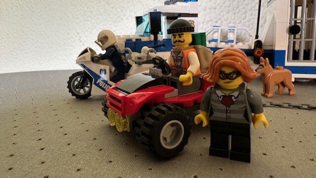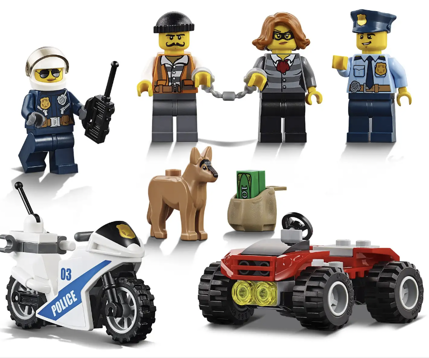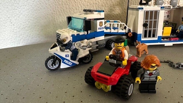- De set bestaat uit een mobiele commandocentrale, een politiemotor en de quad van de boeven.