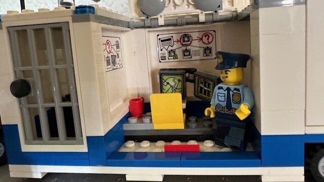 - De mobiele commandocentrale heeft een afneembare cabine, cel met uitbreek-functie en ruimte voor twee minifiguren, commandoruimte met beeldschermen, schotelantenne op het dak, bureau, stoel en bergruimte voor de motor en gereedschap achter in de aanhanger.