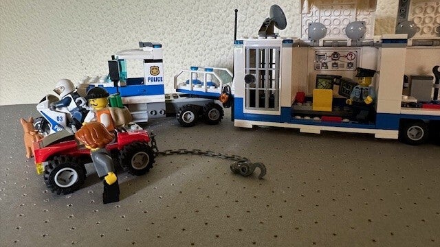 Er ontsnapt een boef uit de mobiele commandocentrale en de LEGO® City politieagenten gaan erachteraan!