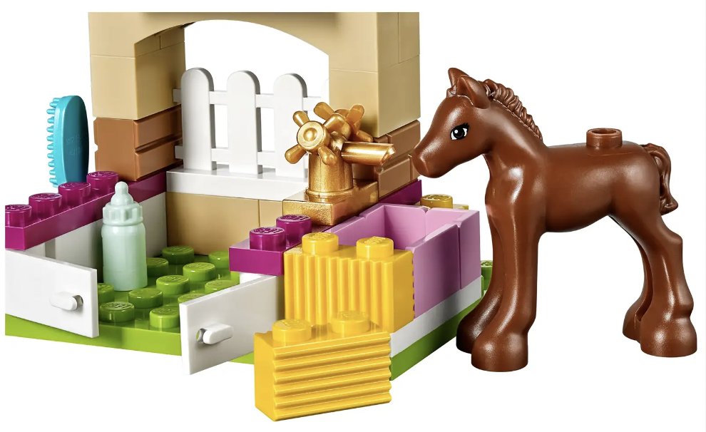 Bouw een schattige stal voor het jonge veulen! Voer het veulentje met de zuigfles totdat hij groot genoeg is om hooi te eten. Pas goed op het veulen en verzorg zijn vacht. Laat hem af en toe uit de stal om te kunnen rennen en laat hem daarna drinken uit de waterbak.