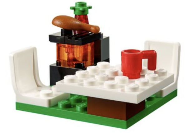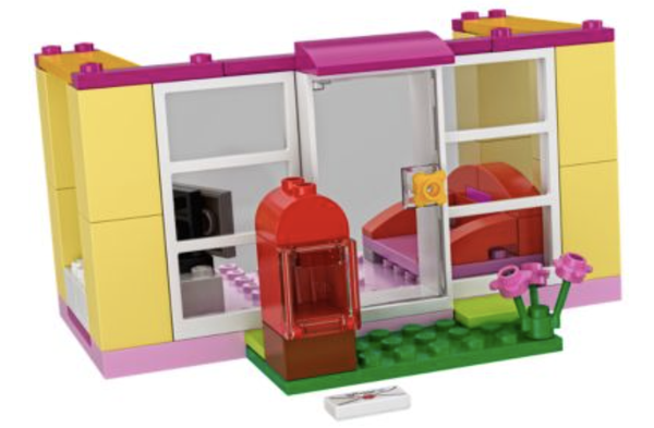 Inclusief 3 minifiguren: moeder, vader en kind, plus een hond.