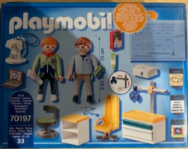 De speelset is rijkelijk gedetailleerd en bevat twee PLAYMOBIL®-figuren, een uitschuifbare lamp, een refractor, een meetbril, een laptop, twee stoelen, visuele testborden en nog veel meer extra's.