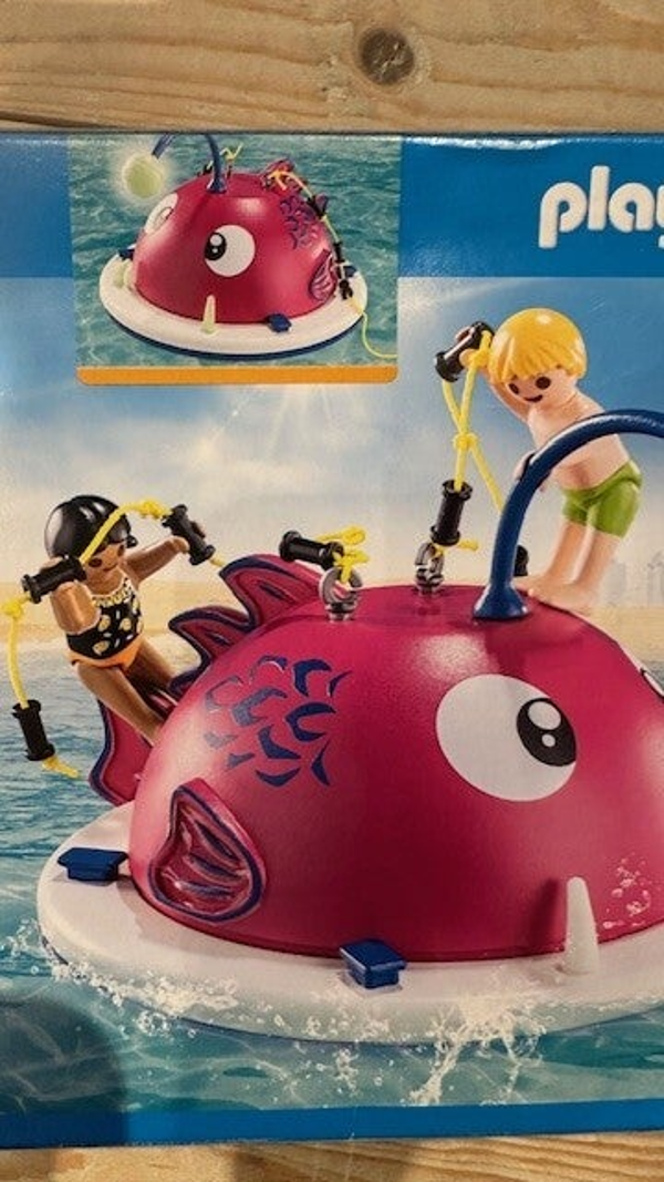 Eerst ga je omhoog naar de kop van het visklimeiland en vervolgens ga je weer met de schommel het water in.
